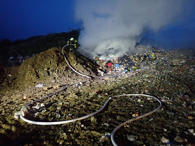 Požár ohlásil pár minut po deváté zdejší zaměstnanec. „Plameny, které zasáhly přibližně rozlohu okolo 10×15 metrů, měli hasiči brzy pod kontrolou. Postupně s pomocí nakladače rozhrabávali hromadu odpadu a prolévali ji vodou, aby uhasili i skrytá ohniska. Zasahujícím hasičům pomáhalo deštivé počasí, které zrovna bylo nad krajským městem,“ popsala mluvčí hasičů Lucie Javoříková.