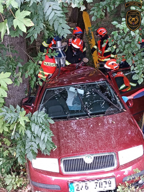 Řidička vyjela odpoledne mimo cestu a narazila do stromu. V autě s ní cestovali ještě dva muži. „Cestujícího na zadní sedačce museli hasiči vzhledem k poškození a poloze vozidla po nehodě vyprostit. Po použití hydraulických vyprošťovacích nástrojů jej hasiči vytáhli na páteřové desce zadní částí vozidla a předali zdravotnické záchranné službě,“ popsala mluvčí hasičů Lucie Javoříková.