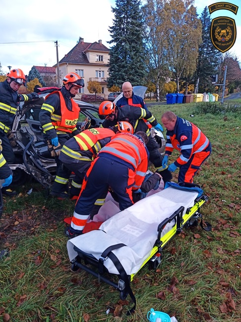 Na pomoc vyrazily tři jednotky hasičů, které zajistily vozidlo, nacházející se mimo trať, proti pohybu, provedly protipožární opatření a zahájily vyprošťovací práce. „Při záchraně muže, sedícího na předním sedadle spolujezdce, museli hasiči použít hydraulické vyprošťovací zařízení, neboť po nárazu byla karoserie vozidla značně poškozena. Na straně řidičky byla situace o poznání lepší a nebylo potřeba využít tuto techniku. Oba zraněné si převzaly posádky zdravotnické záchranné služby a po ošetření je transportovaly do nemocnice k dalšímu vyšetření,“ popsala mluvčí hasičů Lucie Javoříková.