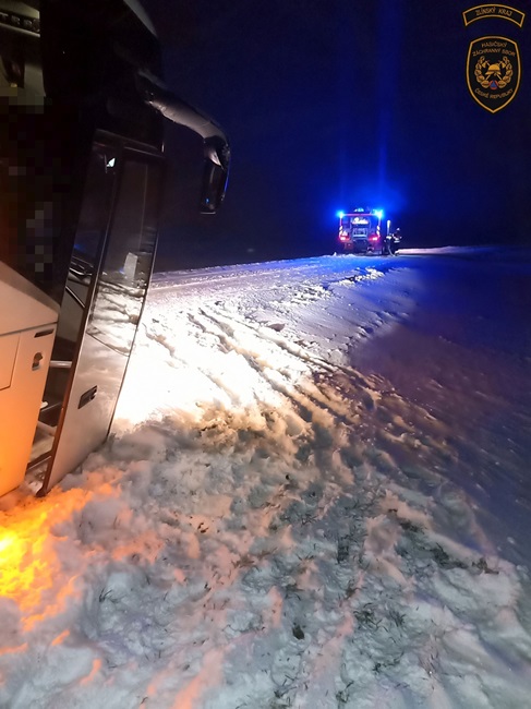 Na místo vyrazily dvě cisterny profesionálních hasičů z Kroměříže. „Jak bylo z místa velitelem potvrzeno, autobus na velmi těžce sjízdné komunikaci sjel do příkopu a nebylo možné z něj vystoupit. Hasiči proto zajistili místo nehody a autobus preventivně stabilizovali. Na pokyn velitele následně odkopali část příkopu, aby bylo možné otevřít dveře a dostat se k cestujícím,“ vylíčil mluvčí hasičů Pavel Řezníček.