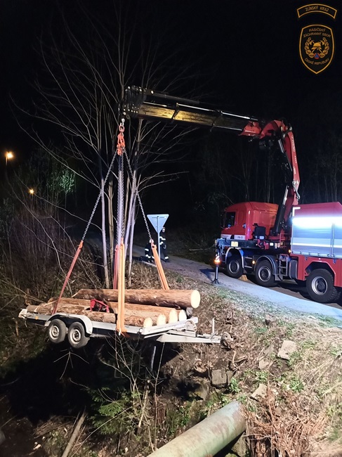 Traktor s vlečkou dřeva sjel v Horní Bečvě do potoka