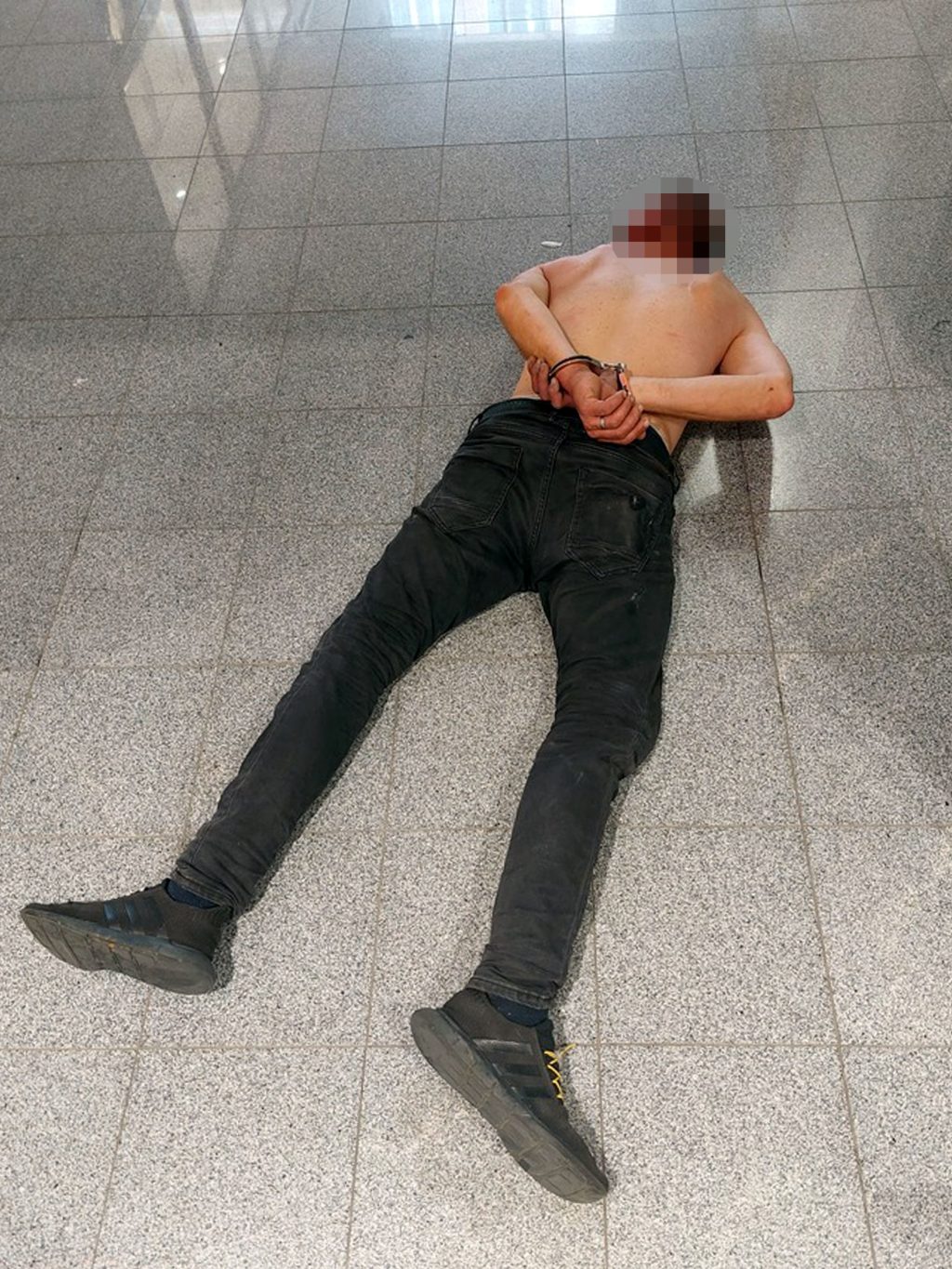 Ve stejný den o necelých 12 hodin později ten samý aktér napadl v nákupním centru na náměstí Míru ostrahu. Hlídce známý muž, nejspíš ještě pod vlivem alkoholu, se pokusil ukrást kalhoty tak, že si je navlékl pod své stávající. Při pokusu o odstranění bezpečnostního čipu si však způsobil krvácející poranění na ruce. Ve vzteku krev začal jako smyslů zbavený roztírat do vystavených oděvů. Jeho běsnění vyvrcholilo napadením pracovníka ostrahy, který ho však zpacifikoval a předal hlídce.