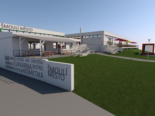 Šmoulí město v současnosti tvoří zastaralé jednopodlažní objekty z 90. let. Spolu s vyhlášením vítěze soutěže také radní města odsouhlasili výpovědi dosavadních nájemních smluv. „Konkrétně se jedná o šestnáct smluv na pozemky a jednu smlouvu na nebytový prostor. Nájemci pozemků, vlastníci staveb, budou mít do skončení tříměsíční výpovědní doby povinnost pozemky vyklidit nebo odstranit stavby na vlastní náklady. Nájemce nebytového prostoru má s městem sjednánu půlroční výpovědní dobu,“ upřesnil mluvčí magistrátu Tomáš Melzer.