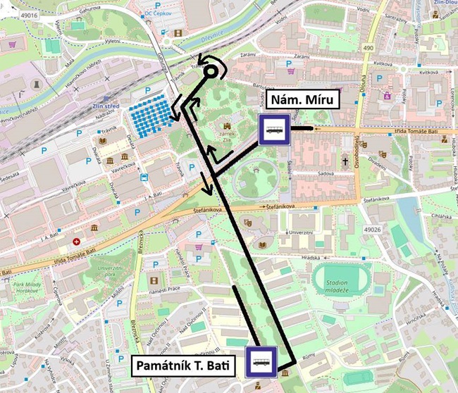 Ve dnech 9. – 18. července budou autobusové spoje linky 31P jezdit k Památníku T. Bati od zastávky Náměstí Míru bez zastavování závlekem přes okružní křižovatku ve Vodní ulici. Důvodem bude nemožnost levého odbočení z tř. T. Bati do Gahurovy ulice. Závlekem vznikne na lince zpoždění asi 4 minuty.