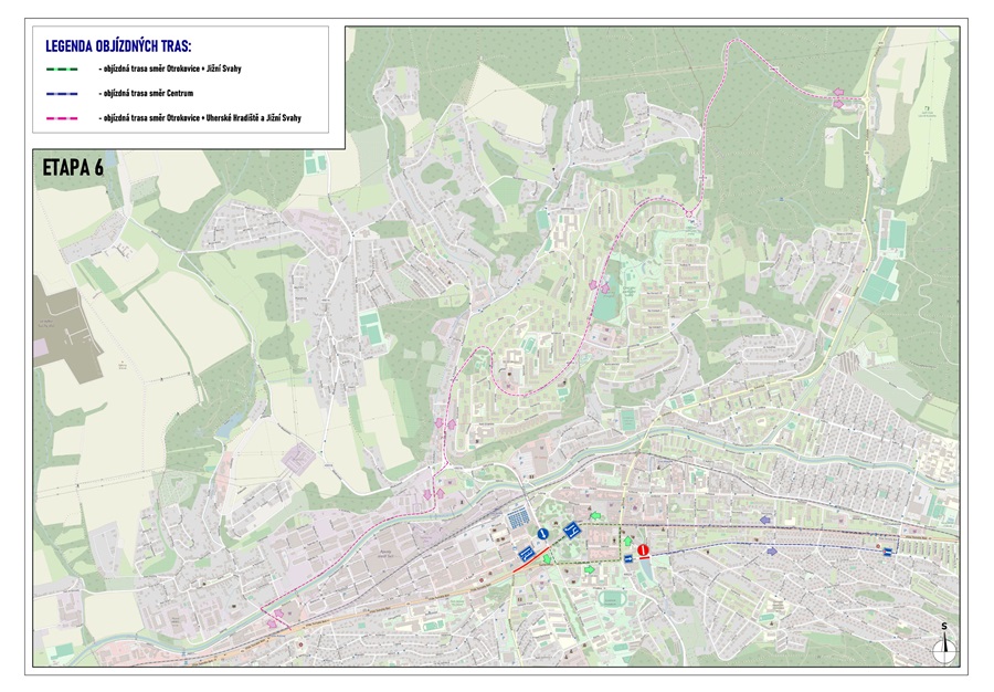 V rámci druhé části stavebních prací, tedy etapy 6, nebude vozidlům jedoucím po Gahurově ulici ve směru z Jižních Svahů umožněno odbočování doprava ve směru na Otrokovice. Objízdná trasa povede ulicemi Gahurova, Štefánikova, Osvoboditelů a po silnici I/49.