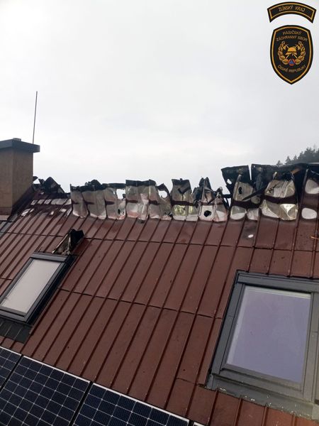 Kvůli dešti byla střecha na pokyn velitele provizorně oplachtována. Do půlnoci pak na místě zůstaly dobrovolné jednotky na dohlídku.
