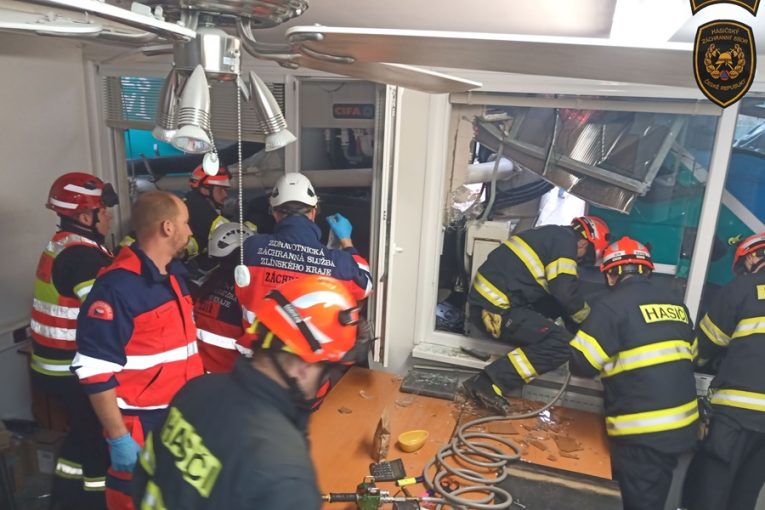 V době příjezdu hasičů se na místě již nacházela posádka záchranářů včetně lékařky a poskytovali zraněnému lékařskou péči. „Hasiči provedli průzkum místa nehody a rychle zahájili vyprošťovací práce, neboť muž byl zaklíněn mezi budovou a vozidlem tak, že jej nebylo možné bez pomoci prostředků vytáhnout. Proto hasiči z technického kontejneru použili tři zvedací vaky a pomocí nich o pár centimetrů odtlačili domíchávač dál od zdi. Díky tomu tak bylo možné muže oknem vtáhnout do budovy,“ vylíčila mluvčí hasičů Lucie Javoříková.