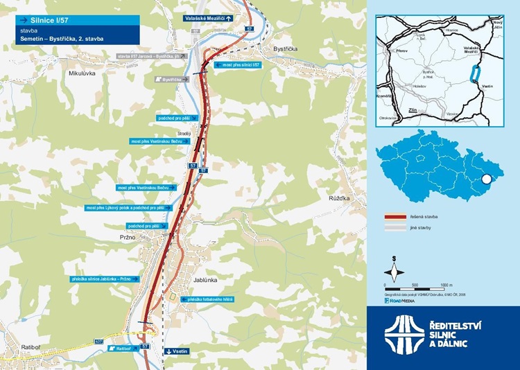 Během první poloviny roku 2025 bude ŘSD pracovat na přeložkách inženýrských sítí, hlubinném založení mostů a provádět zemní práce na hlavní trase silnice I/57 a komunikace III/05732. „Propojení obcí Pržno a Jablůnka zachováme po mostu přes Vsetínskou Bečvu, a to nejméně do třetího kvartálu roku 2026. Panelový chodník v obci Bystřička budeme během výstavby udržovat ve schůdném stavu,“ doplnil Dvořák.