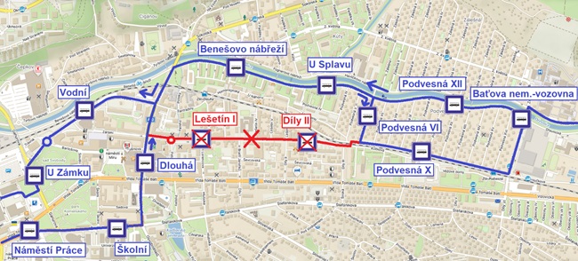 Výlukový provoz na lince 38 bude platit od pátku 14. února od 20:00 a po celou sobotu 15. února. V pátek večer se bude výluka týkat jen pěti spojů. „Jízdní řád výlukové linky 38X zveřejníme v předstihu na našem webu. Časové polohy spojů se nezmění. Od zastávky Vodní ve směru do továrního areálu a od zastávky Podvesná X ve směru k Baťově nemocnici budou jezdit autobusy podle standardního jízdního řádu. Beze změny zůstanou rovněž odjezdy spojů v trase na konečnou stanici Za Kapličkou (38g) a zpět. I tyto spoje ale budou označeny jako výluková linka 38X – s uvedením cílové zastávky Za Kapličkou,“ upřesnil vedoucí dispečer DSZO Jan Tesař.