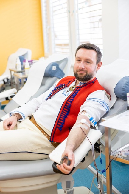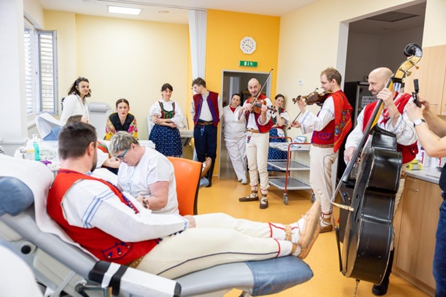 Po půl litru dáme, pak si zazpíváme. Po půl litru, po půl litru. Předělaný popěvek má od pondělí ambici stát se novou hymnou valašského darování krve. Na hematologické a transfuzní oddělení přišla většina folkloristů již podruhé, ani tentokrát ale nechybělo několik prvodárců. „S folkloristy jsem tu už podruhé, poprvé jak vloni Jasénka zorganizovala. Ale někdy před lety na vysoké škole v Olomouci jsem také byla dárce. Pak jsem měla dlouhou pauzu, děti, teď se k tomu zase vracím. Je to fajn jít společně darovat krev, má to smysl a navíc se společně potkáme, pobavíme, dáváme našemu počínání širší rozměr,“ sdělila Darina Budíková, která působí ve folklorních uskupeních Jasénka a Blaženky.