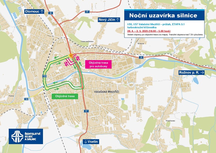 Obě květnové etapy proběhnou souběžně s opravou mostu přes Rožnovskou Bečvu. Tato uzavírka potrvá od 5. května až do konce října.