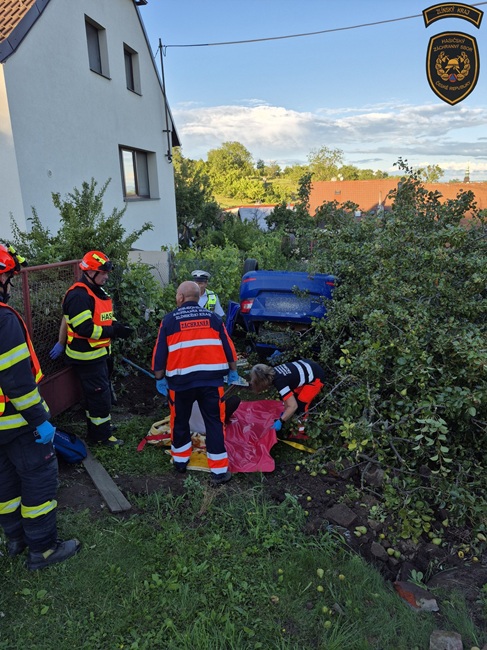 K nehodě došlo včera po devatenácté hodině večer v obci Polešovice na Uherskohradišťsku. „Dvaašedesátiletý řidič fabie při průjezdu pravotočivou zatáčkou v táhlém klesání nezvládl řízení, přerazil dva zasazené betonové sloupky i s bránou a skončil na střeše v zahradě rodinného domu,“ popsal policejní mluvčí Radomír Šiška. Řidič utrpěl zranění, se kterým byl převezen do Uherskohradišťské nemocnice.