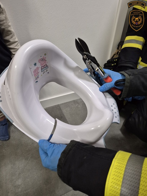 Hasiči z centrální stanice v Uherském Hradiště vyjížděli k záchraně malého šikuly. „Jak ohlásila maminka v nesnázích na krajské operační a informační středisko, malý chlapec si hrál a než se otočila měl na hlavě dětské toaletní sedátko, ze kterého jej nemohla vyprostit. Protože neměla žádné prostředky ani možnost, jak malému šikulovi pomoci obrátila se na hasiče,“ přiblížila mluvčí hasičů Lucie Javoříková.