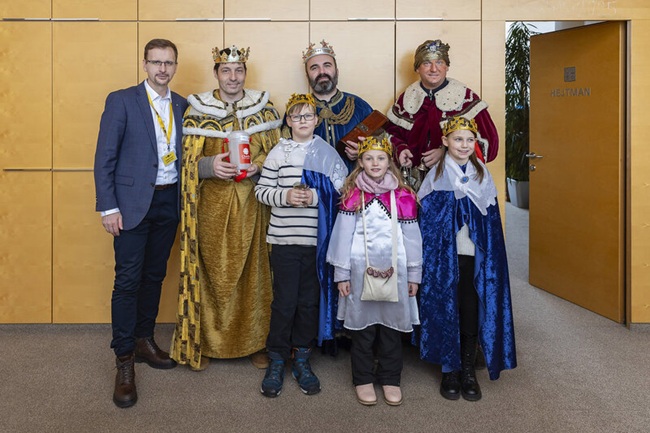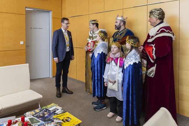 ZLÍN – Velmi milá návštěva zavítala do sídla kraje na Baťův mrakodrap. Tři králové v doprovodu malých pomocníků přišli koledovat v rámci tradiční Tříkrálové sbírky, kde je v úterý 6. ledna hejtman Radim Holiš spolu s krajským radním Miroslavem Zemánkem.