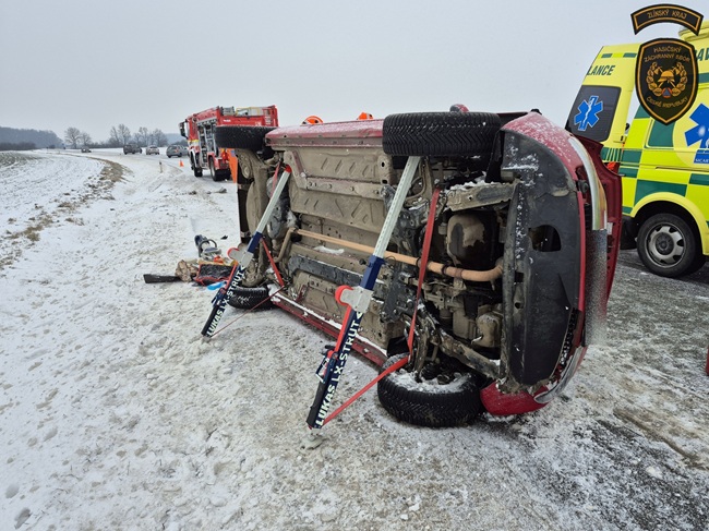 Krátce před polednem zasahovali hasiči také v Kroměříži. Řidič osobního automobilu se na silnici přetočil na bok a zůstal uvnitř zaklíněný. Na místo dorazila jednotka profesionálních hasičů z Kroměříže.