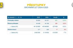 Naopak doprava přinesla horší statistiky. „V oblasti dopravy jsme bohužel zaznamenali nárůst tragických událostí. Ve Zlínském kraji zemřelo na následky dopravních nehod 28 osob, což je o 13 více než v roce 2024, 78 osob bylo těžce zraněno, u 1 341 osob evidujeme lehká zranění,“ shrnuje Trnková.