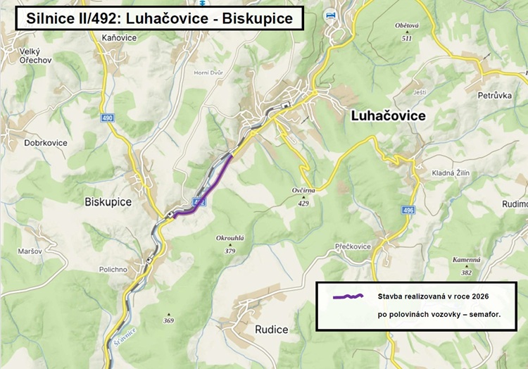 „Na druhé straně silnice II/492, než bude probíhat výstavba opěrných zdí, bude vybudována provizorní komunikace v délce 280 metrů ze silničních panelů, o celkové šířce 3,50 metru. Tato komunikace bude sloužit pro převedení dopravy při výstavbě opěrných zdí,“ doplnil mluvčí Ředitelství silnic Zlínského kraje Vojtěch Cekota.
