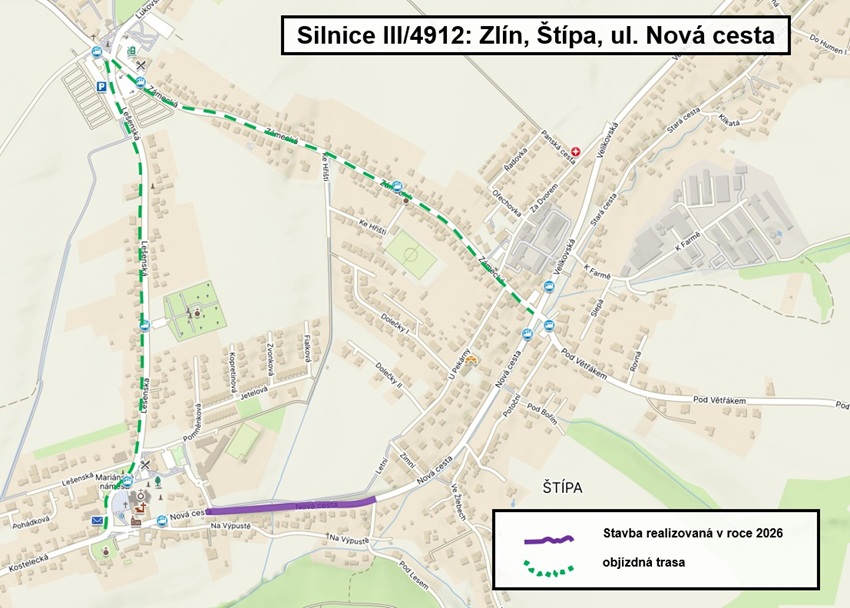 ZLÍN – Řidiči ve Zlíně-Štípě musí od poloviny dubna počítat s dlouhodobou uzavírkou. Ředitelství silnic Zlínského kraje zde opraví téměř kilometrový úsek silnice směrem na Velíkovou a vybuduje nové opěrné stěny kvůli sanaci sesuvu. Provoz povede po objízdné trase přes křižovatku u zlínské zoo.
