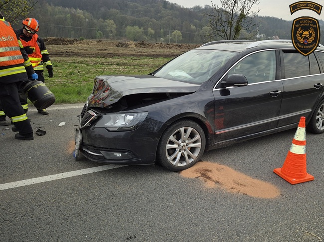 Hasiči dorazili na místo krátce po ohlášení události v 16:35. Silnici zabezpečili a začali pracovat na odstranění následků střetu.