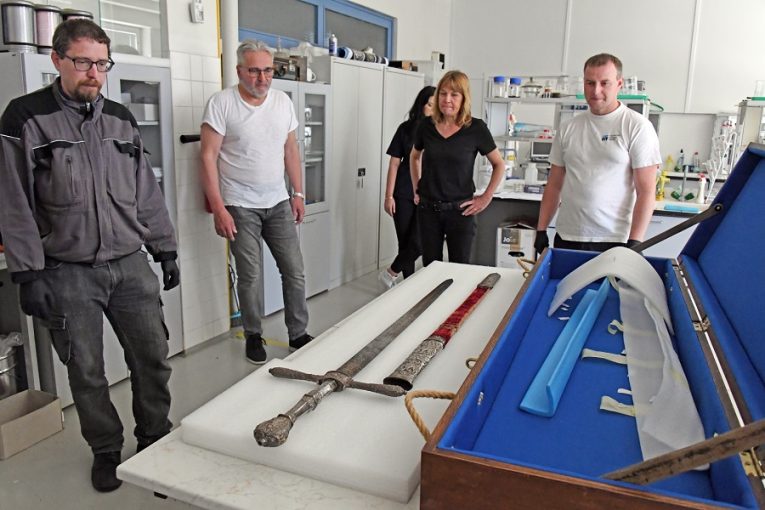 Rukojeť ze stříbra, pochva z bukového dřeva. Hejtmanský meč zkoumali vědci