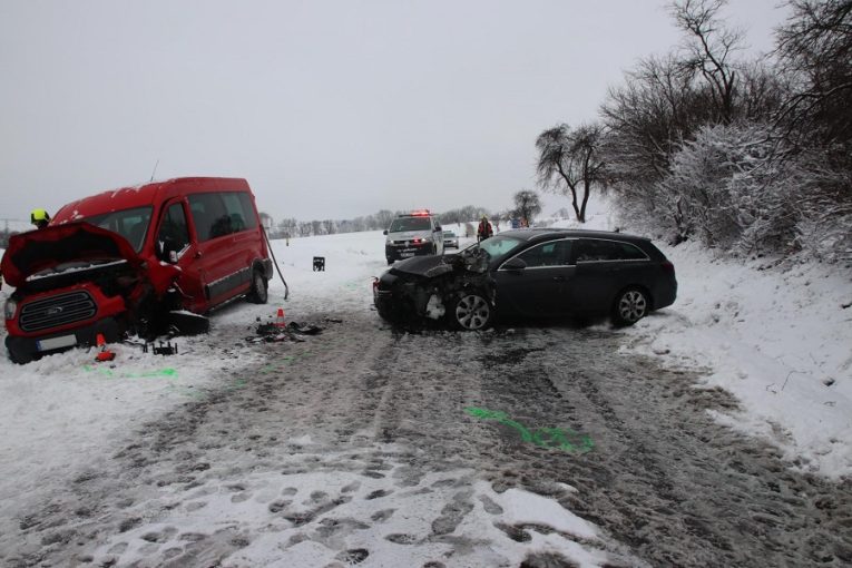 Mladá řidička jela po zasněžené silnici příliš rychle, pět lidí to odneslo zraněním