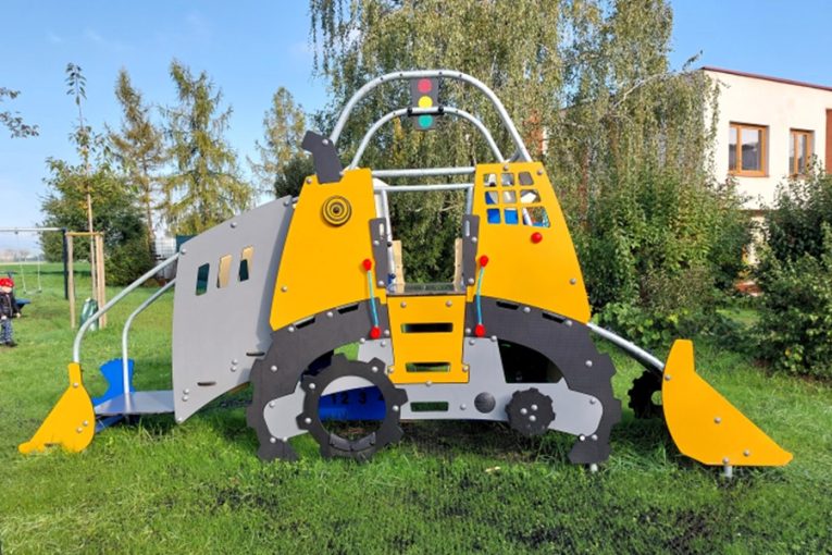 Novému dětskému hřišti v Jarošově dominuje bagr