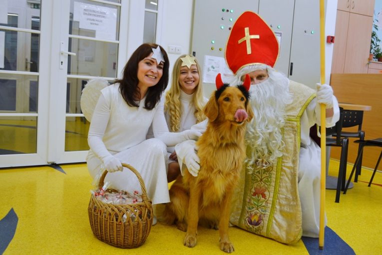 Mikuláš naděloval ve valašskomeziříčské nemocnici. Družinu doplnil i canisterapeutický pes