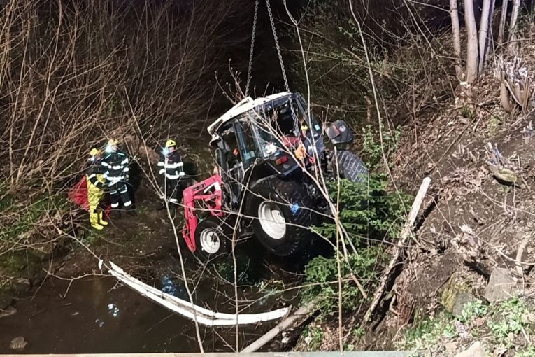 Traktor s vlečkou dřeva sjel v Horní Bečvě do potoka
