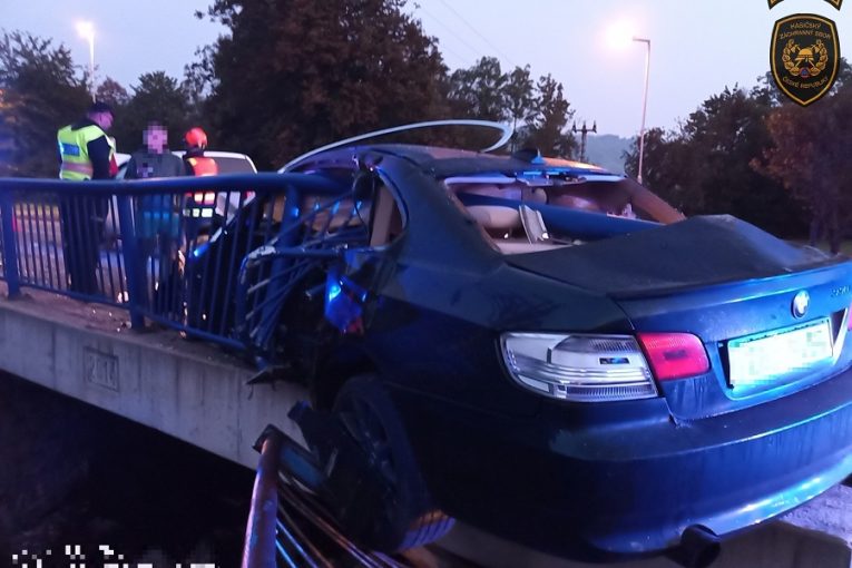 Při nehodě v Novém Hrozenkově projelo autem zábradlí