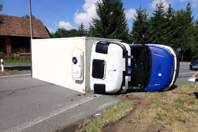 Devatenáctiletá řidička nezvládla zatáčku a skončila s dodávkou na boku, dva lidé jsou zranění