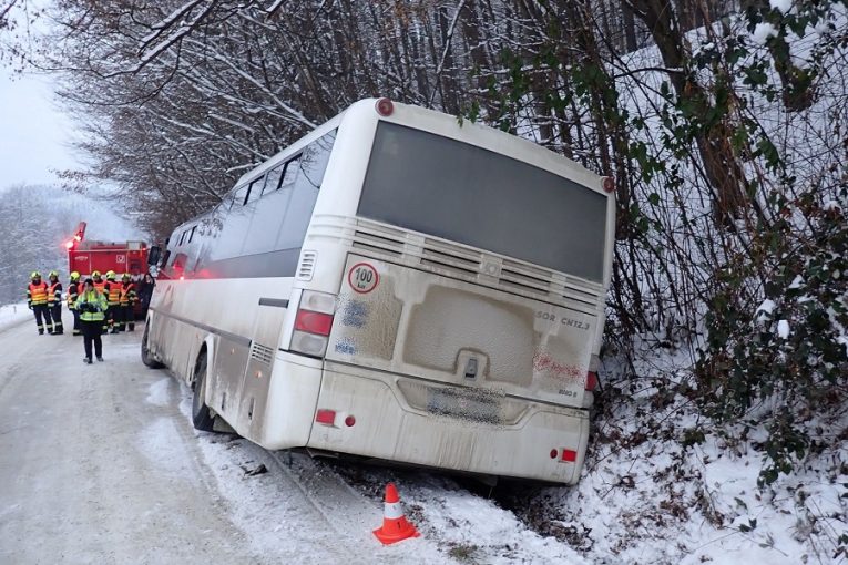 Autobus uvízl v příkopě, cestující zůstali uvnitř uvěznění