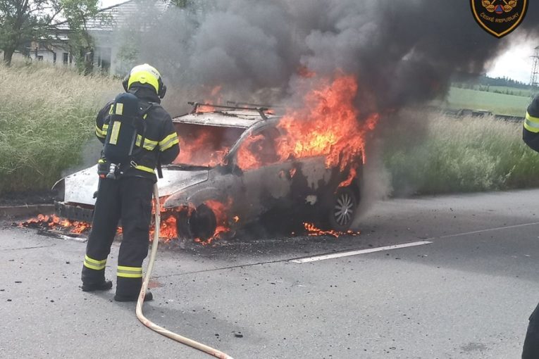 Dva požáry naráz: Hasiči vyjížděli k hořícímu autu i fotovoltaické elektrárně