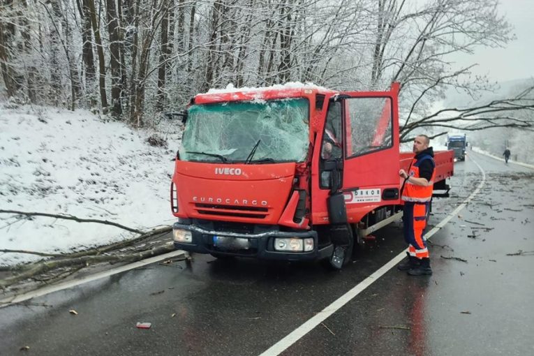 Padající větev prorazila kabinu nákladního auta