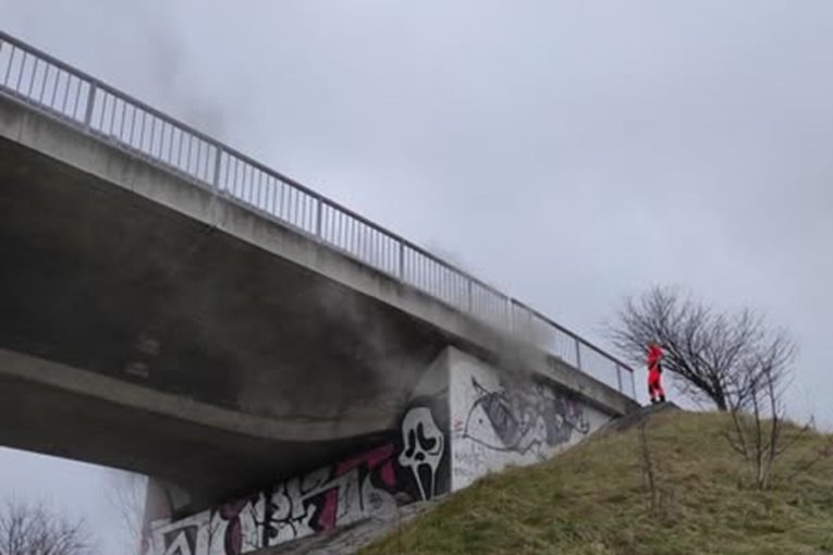 Kouř vycházející z mostu u dálnice upoutal projíždějící záchranáře