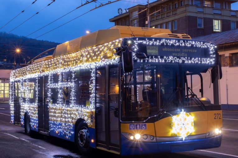 Vánoční trolejbus vyjíždí do ulic