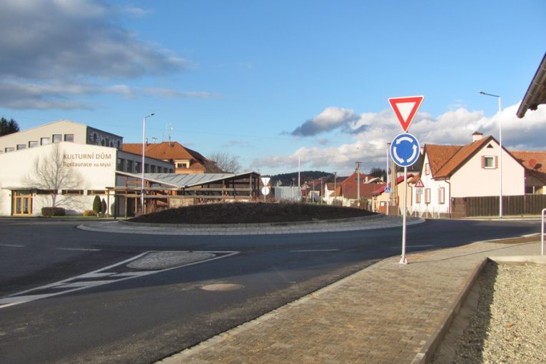 Řidiči ve Vlachovicích už projíždí po novém kruháči a opravené silnici